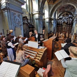 Wir konnten die „Missa in B“ (KV 275) von Wolfgang Amadeus Mozart wie geplant zur Aufführung bringen, allerdings in stark verkleinerter Besetzung: ungefähr der halbe Chor musizierte zusammen mit dem Solistenquartett Birgitta Wetzl, Elisabeth Weber, Markus Sölkner und Ewald Nagl das schwungvolle Werk in Begleitung eines Streichtrios unseres Orchesters und mit Christina Eichberger an der Orgel. Die feiernde Gemeinde und wir Ausführende selbst hatten große Freude an den schon so lange vermissten feierlichen Klängen einer Chor-Orchester-Messe!