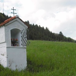Dieses Zeichen des Glaubens steht am rechten Ufer des Tyrnauer Baches – kurz vor der Ortschaft Schrems – auf einer Wiese, die früher auch „Kreuzacker“ genannt wurde. Es beherbergt hinter einem kleinen, verglasten Gitter ein schönes Marienbild und Statuen von verschiedenen Heiligen.
