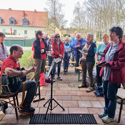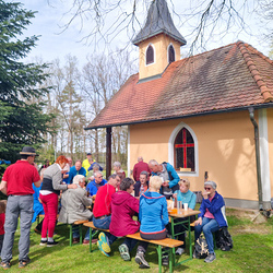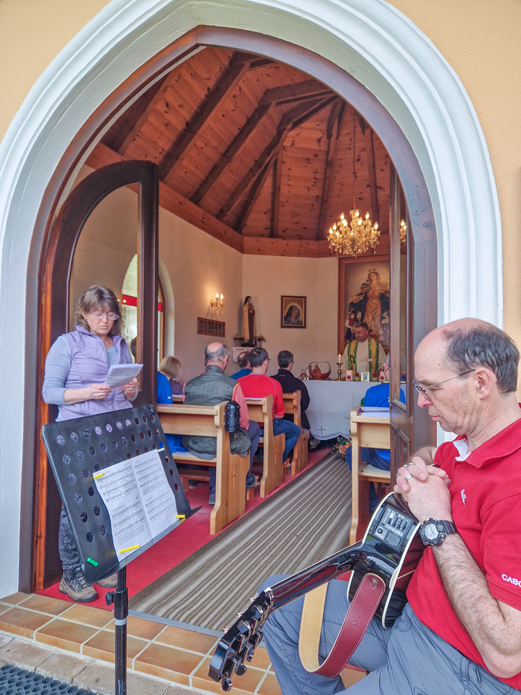 Das Ziel des Tages war die Marienkapelle im Kaiserwald. Dort feierten wir um etwas nach 11:00 Uhr einen Gottesdienst und ließen den wunderbaren Vormittag anschließend bei herrlichem Wetter und einer kleinen Agape ausklingen.
