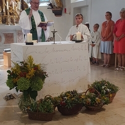Zur Freude aller Kräuterbüschelbinder*innen fanden heuer in unserer Pfarre - zu Ehren der Gottesmutter Maria - wieder zwei Kräutersegnungen statt: am 15. August, dem „Großen Frauentag“, in der Kaiserwald Kapelle mit Diakon Michi Zepf und bei der Sonntagsmesse am 17. August mit Prof. Johann Pock als Zelebranten.